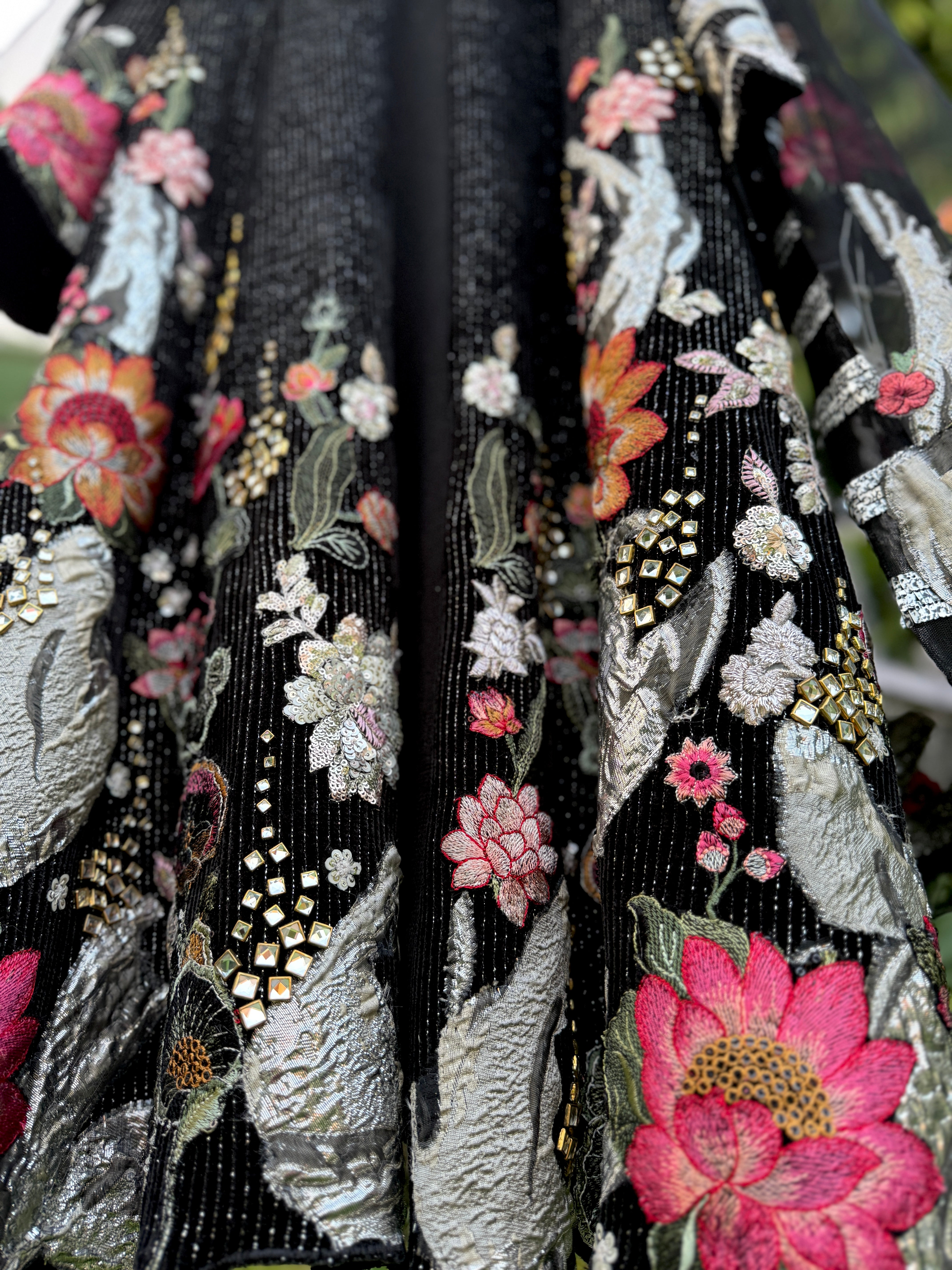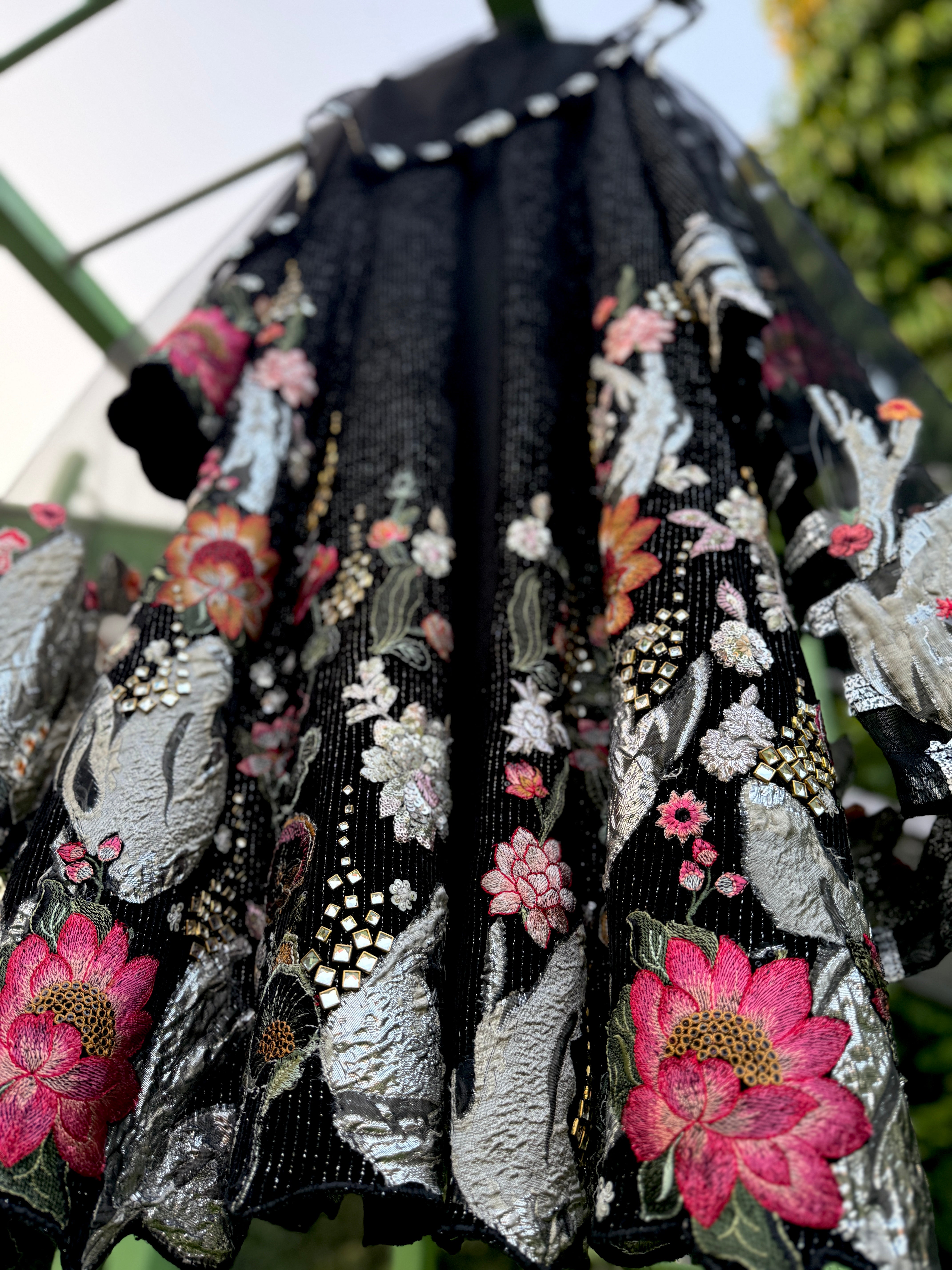 Shirt- front, back and sleeve have tilla, thread, sequin, brocade patchwork and kundan embroidery. Dupatta- 4 side sequin border and 4 corner embroidery