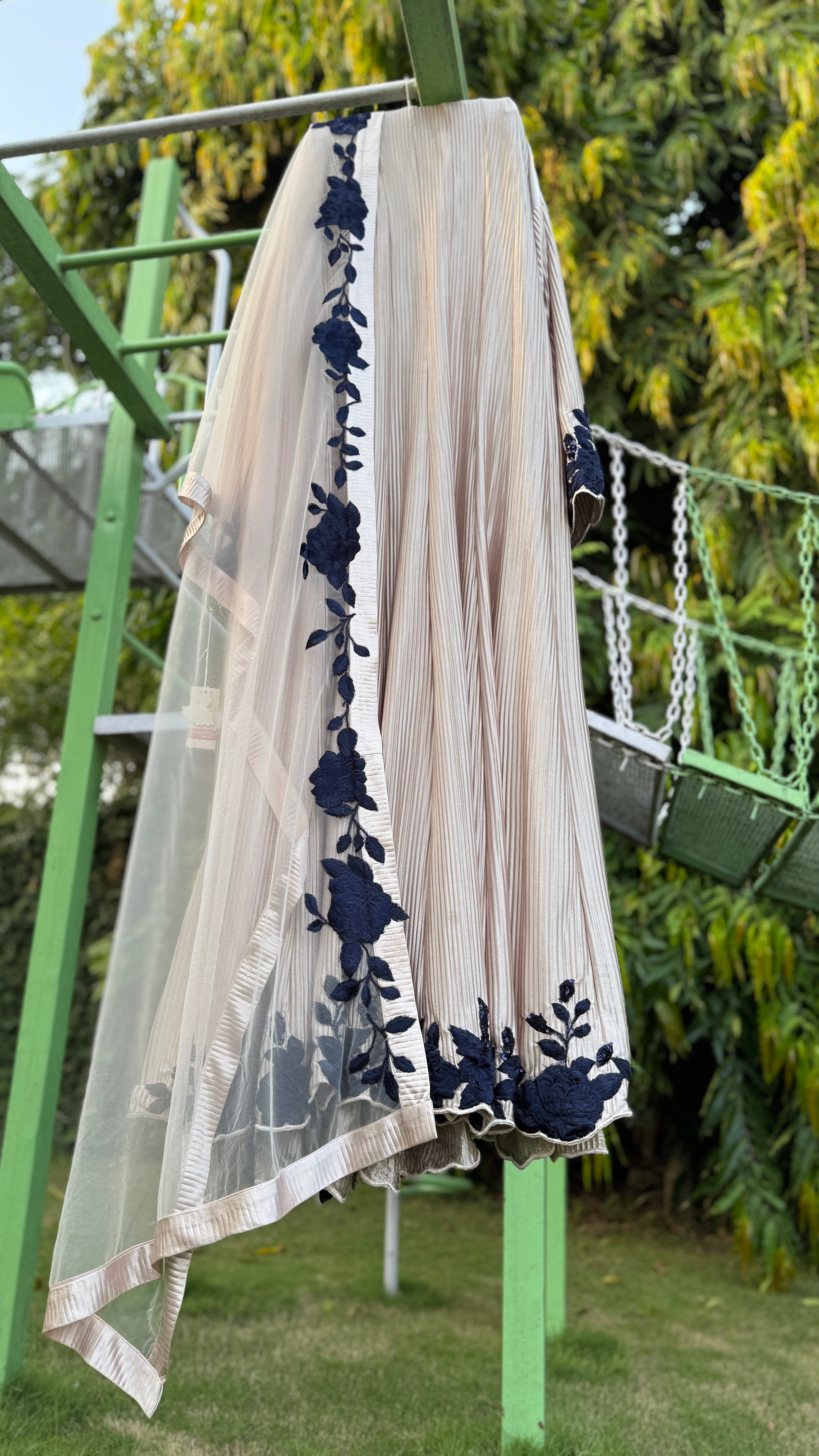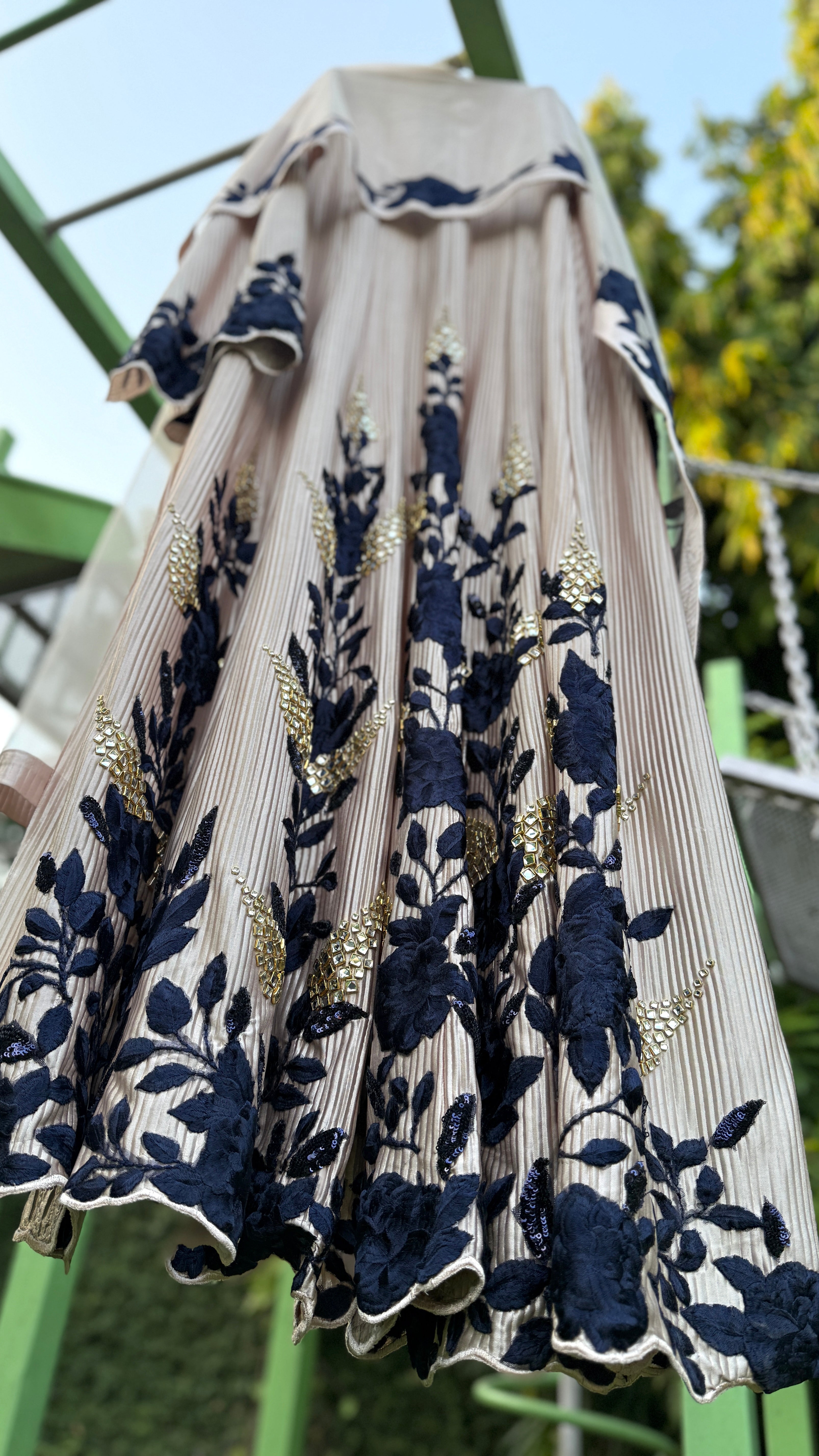 Shirt- front, back have sequin, thread,kundan and cutdana work Dupatta- 4 side lycra pleated border and 1 length Embroidery