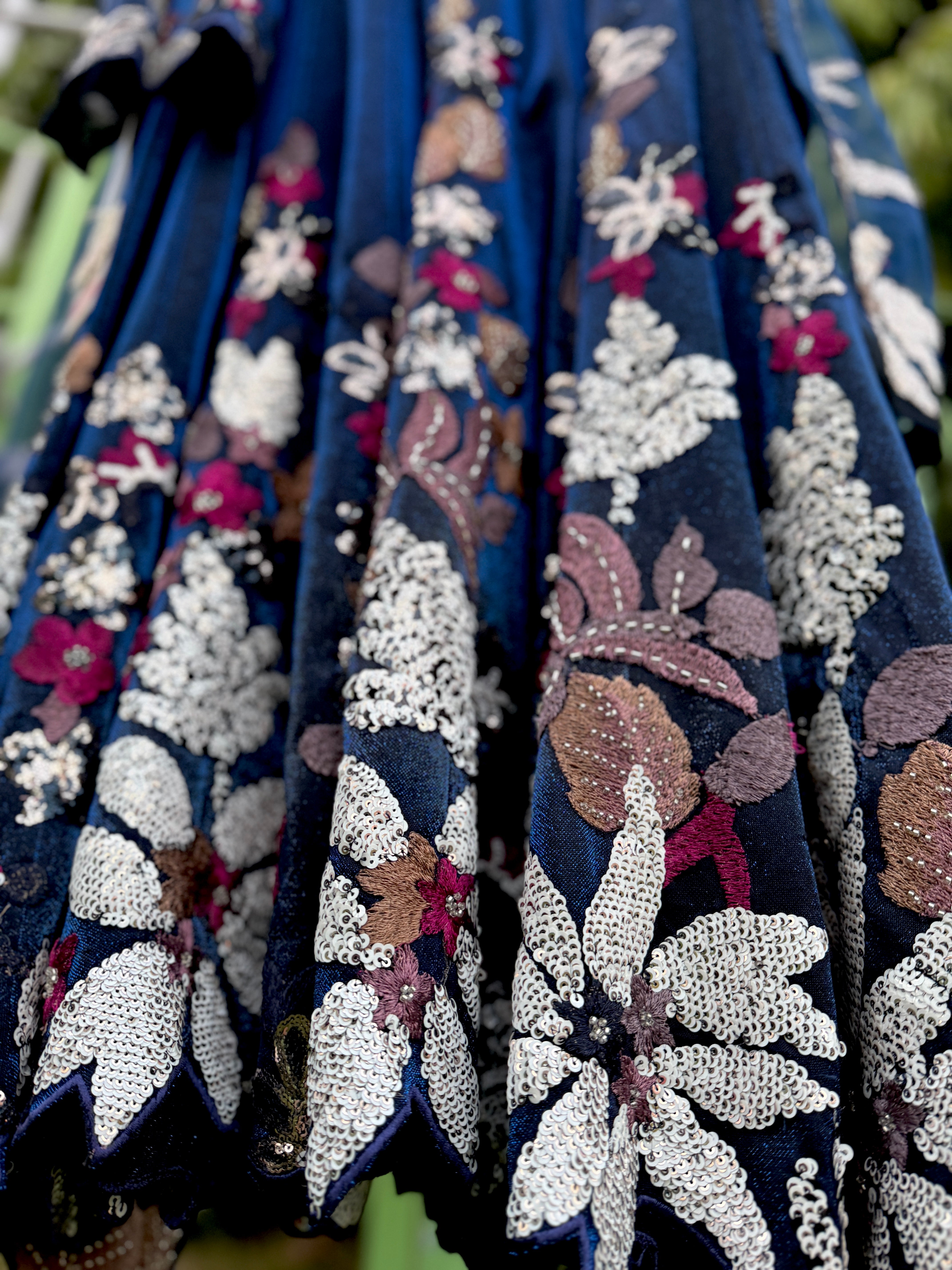 Embroidery- front, back and sleeve- sequin and thread work. Dupatta- border 4 side sequin border and 1 length embroidery.