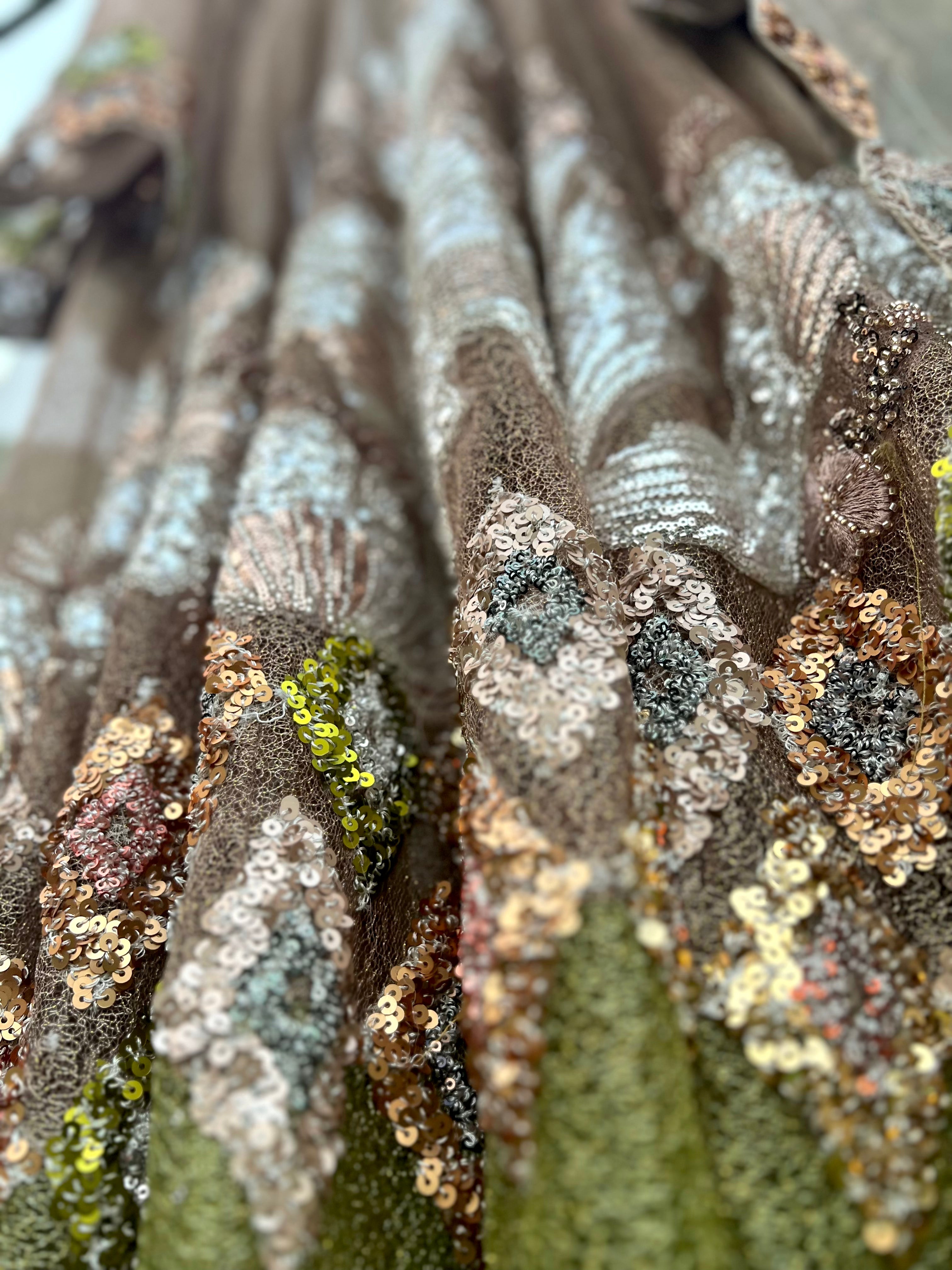 Embroidery- front, back and sleeve -thread work, bead work, sequin and cutdana work.