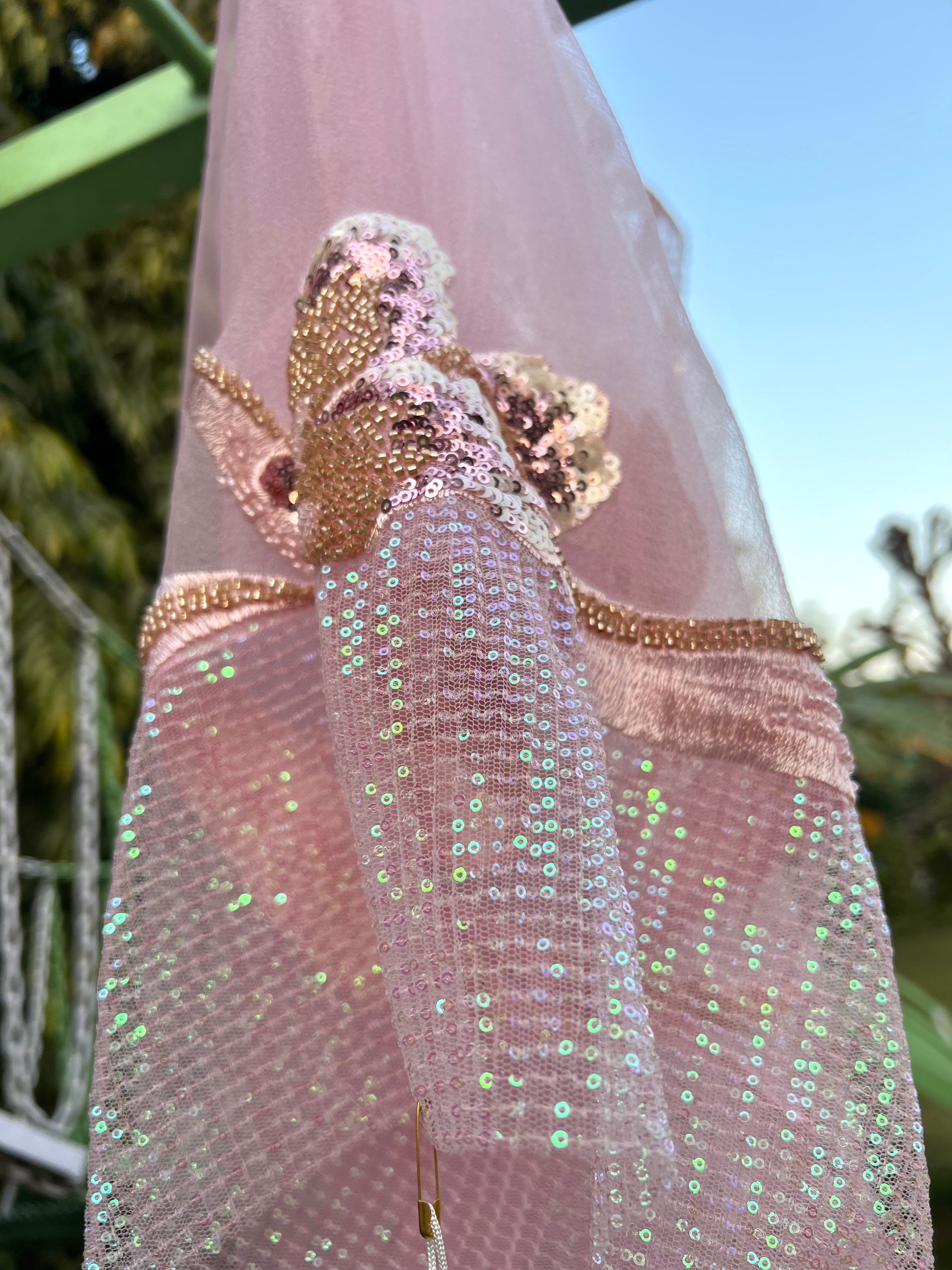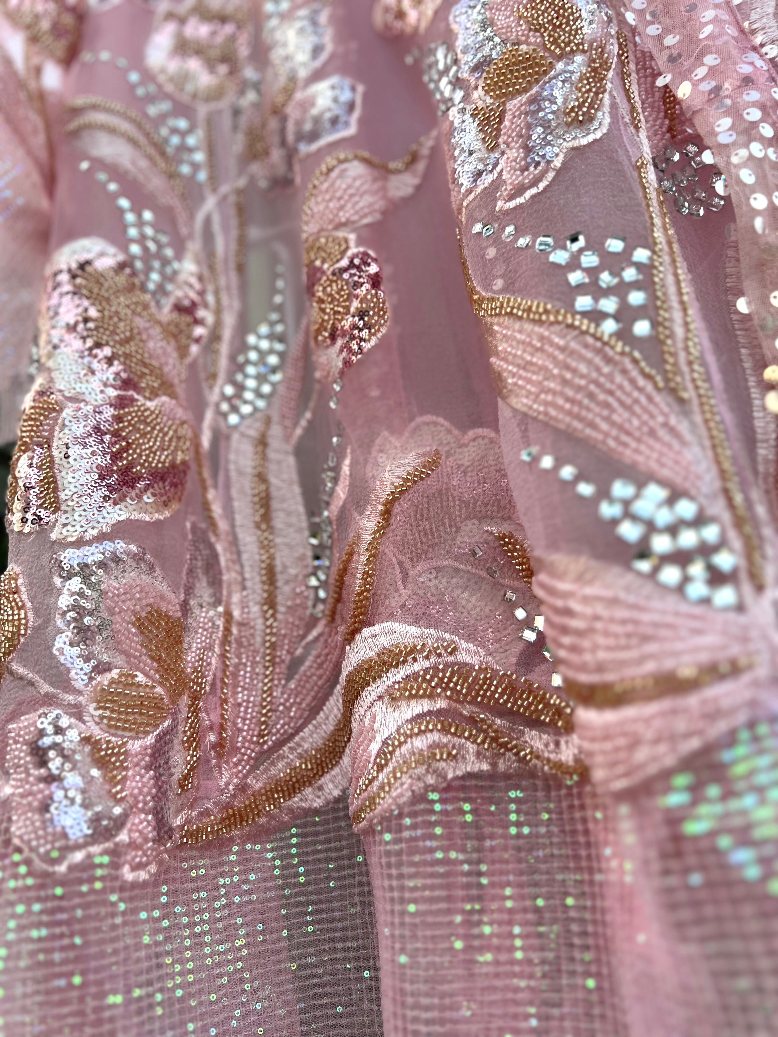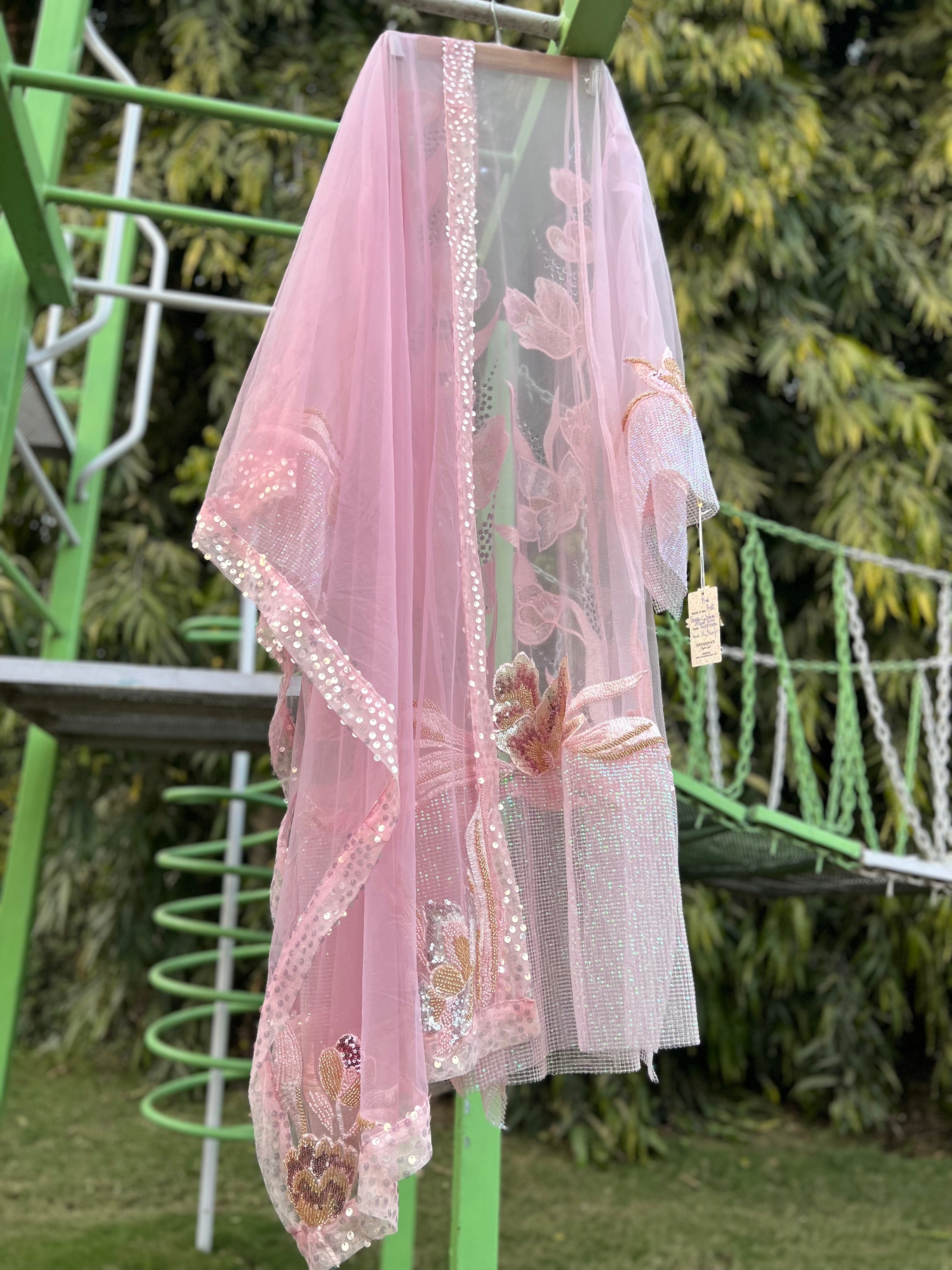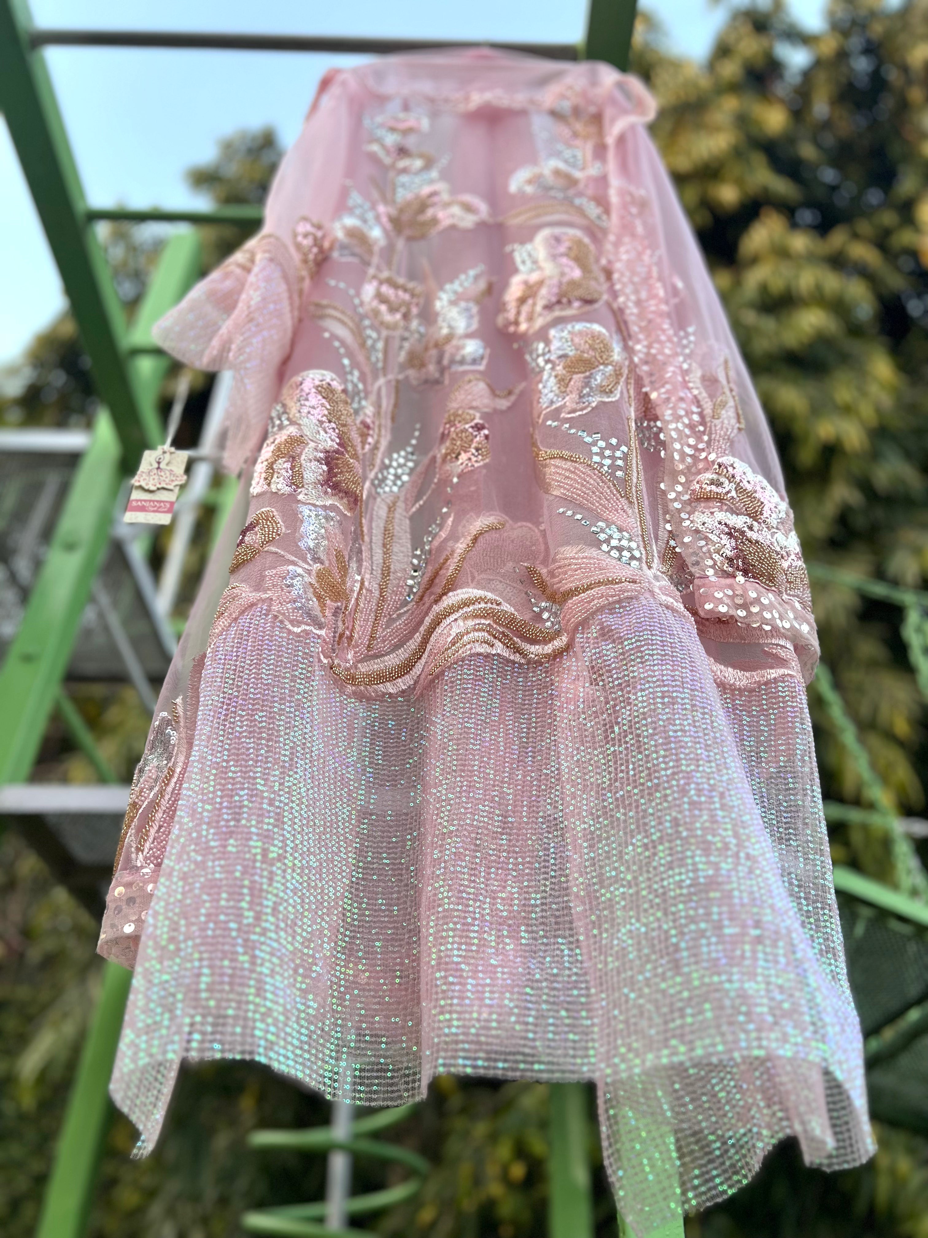 Shirt- bubble Organza and sequin crush at hem, Dupatta net