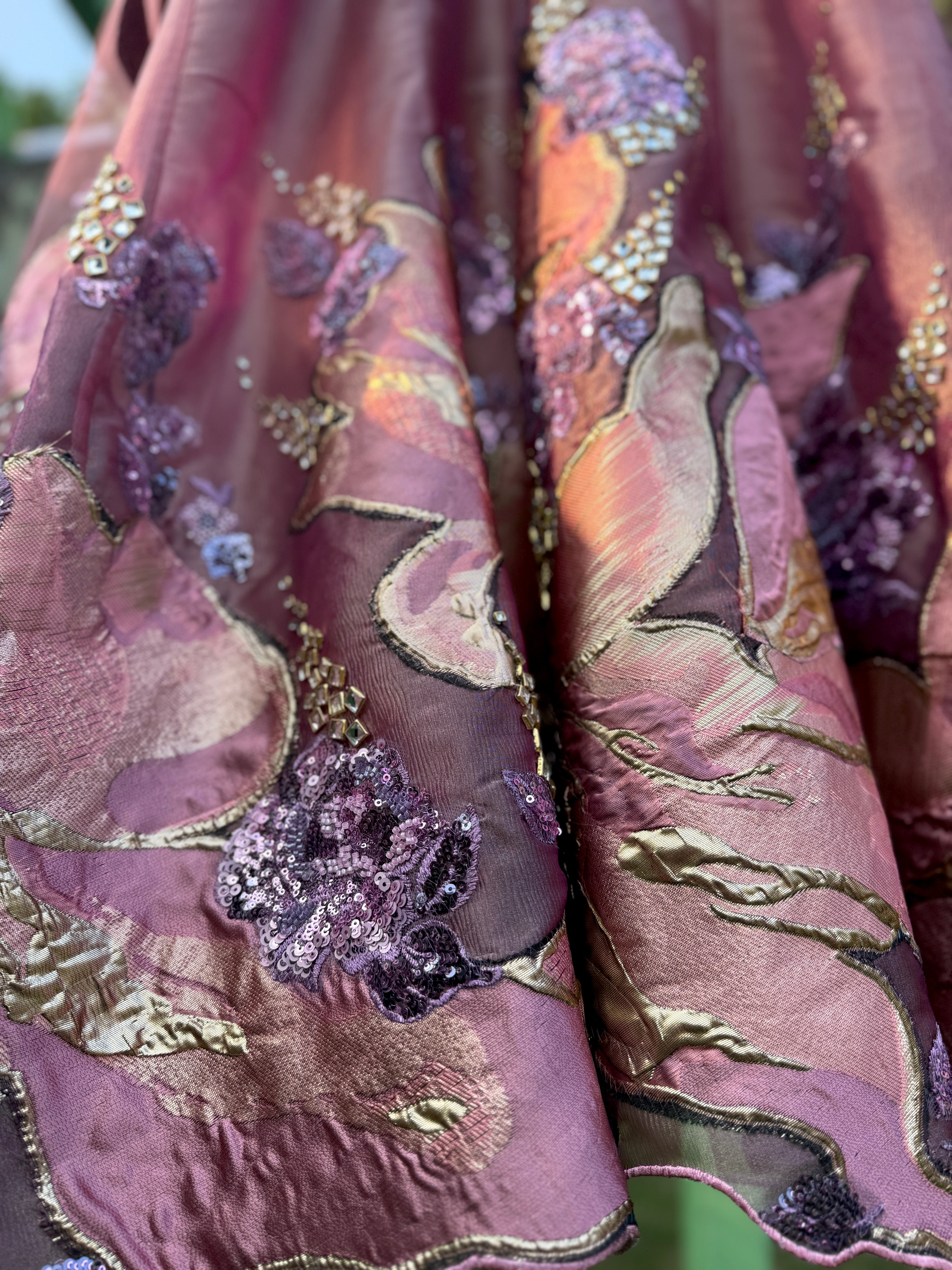 Embroidery- front, back and sleeve -thread work, kundan, brocade Patch work, cutdana, nalki, sequin and pearl work. Dupatta- border 4 side sequin border and 1 length cutwork embroidery.