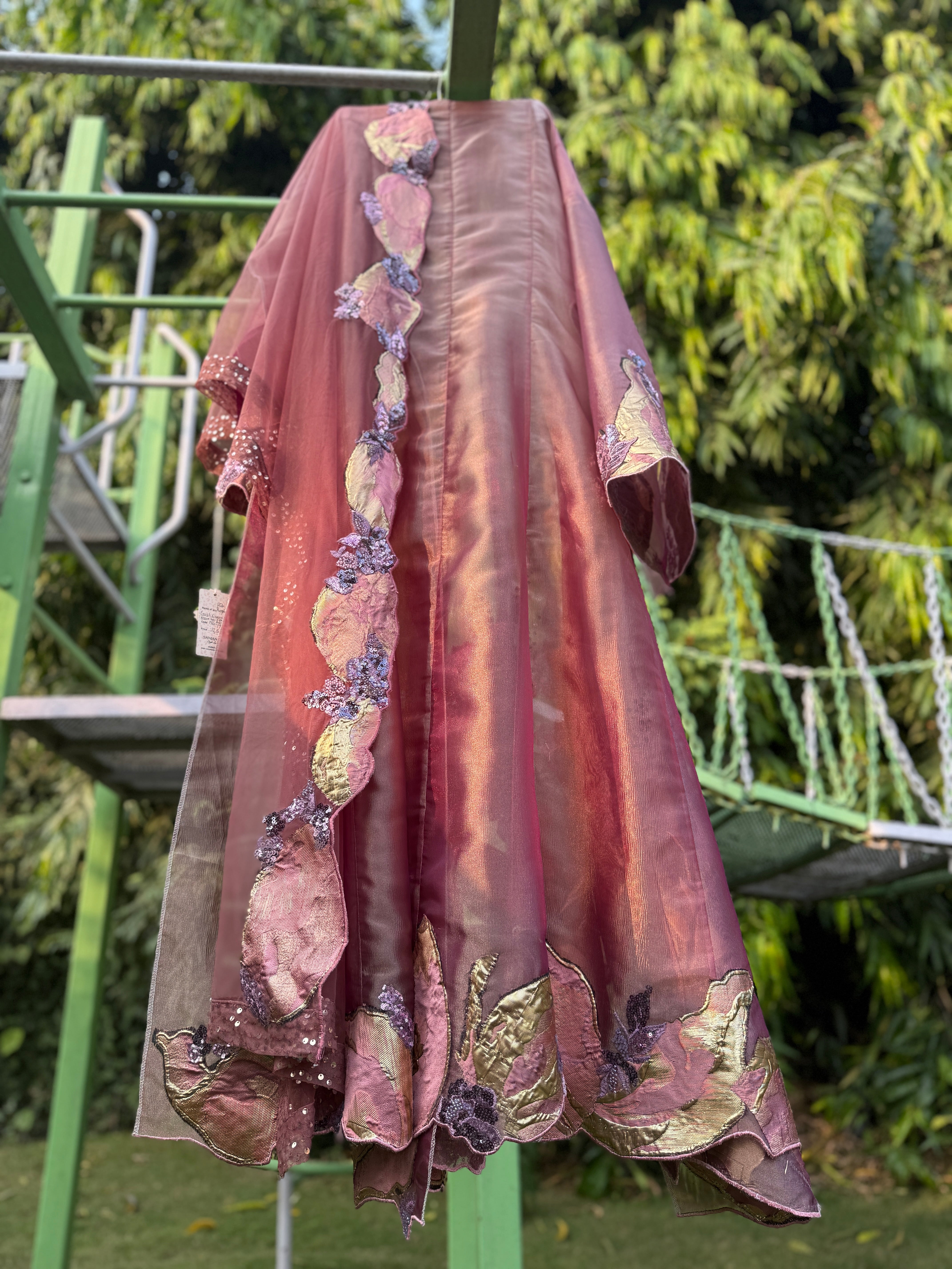 Length of Anarkali-56", length of sleeve-24" sleeve hem- 20" full round Ghera-3.75mts