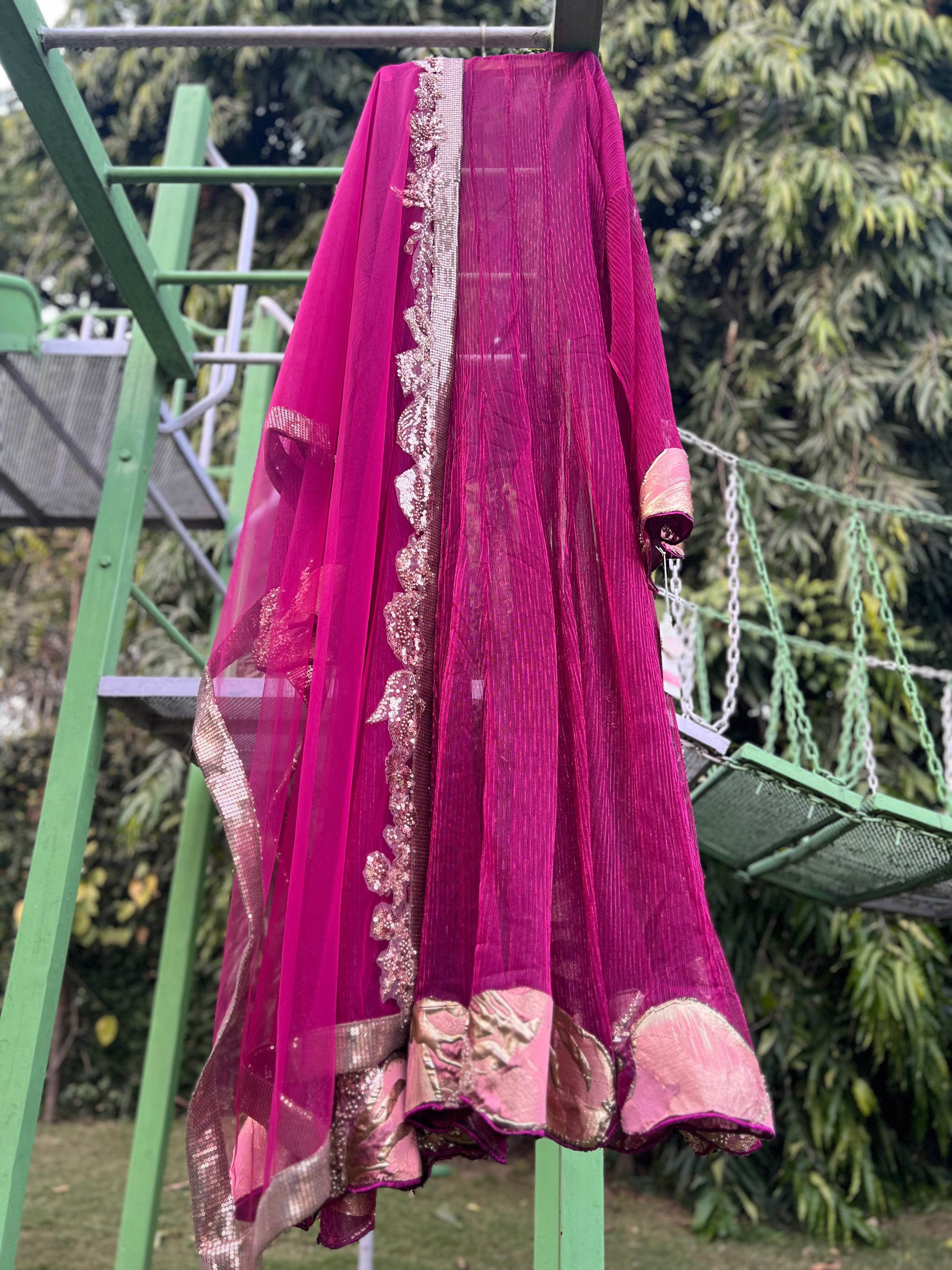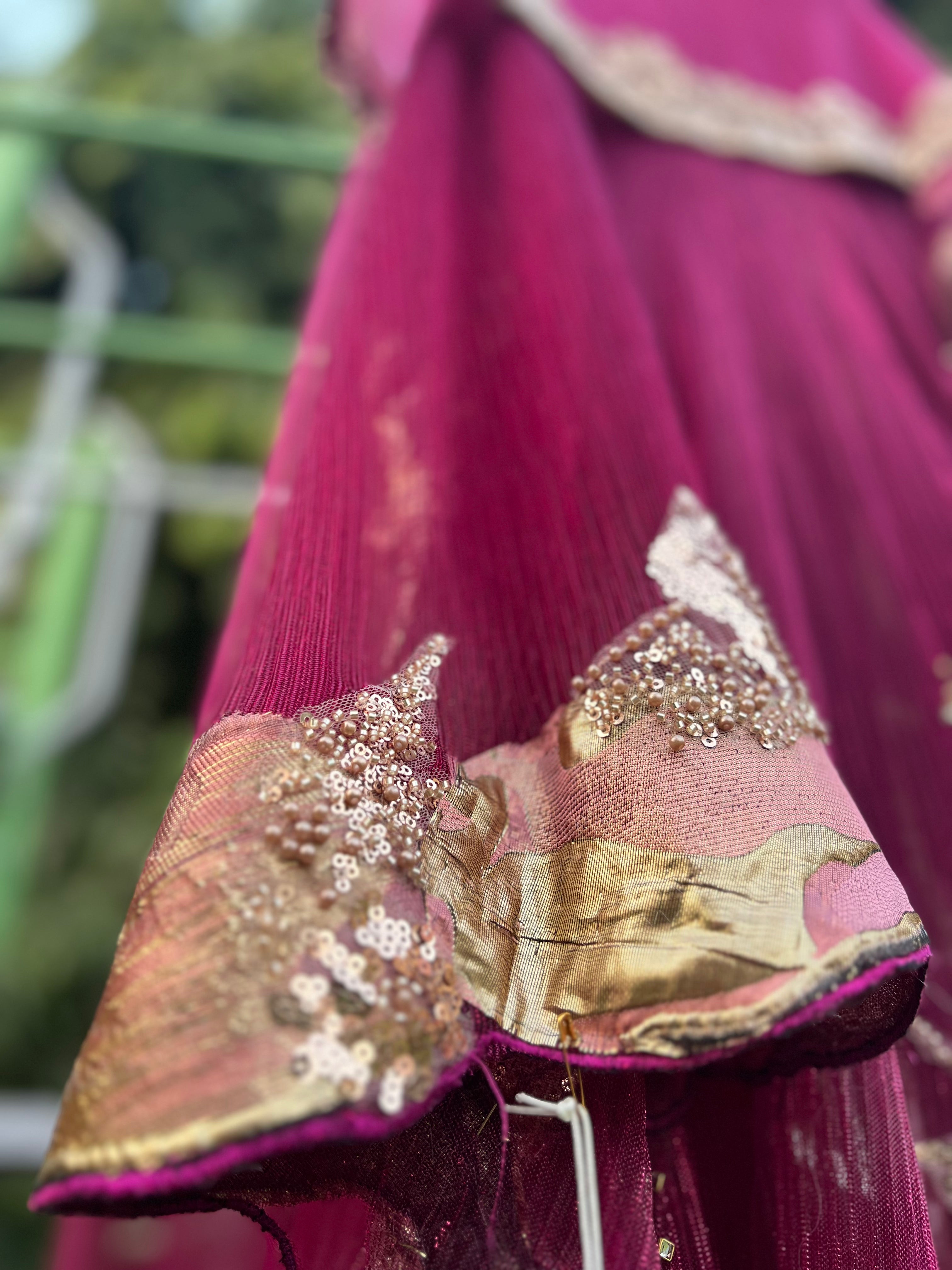 Fabric: anarkali -thin pleated lycra sheer, Dupatta- Net