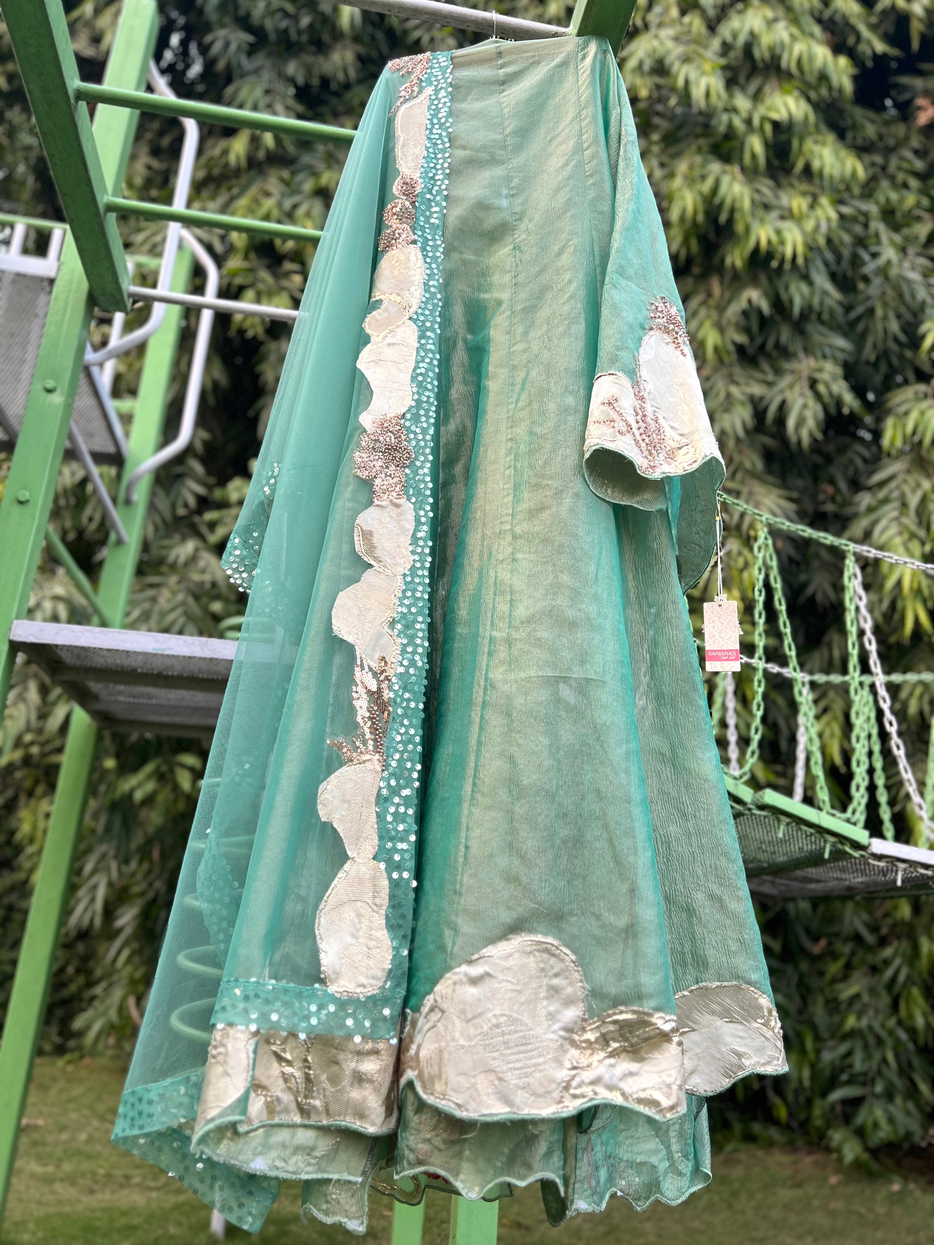 Length of Anarkali-56", length of sleeve-24" sleeve hem- 20" full round Ghera-3.75mts